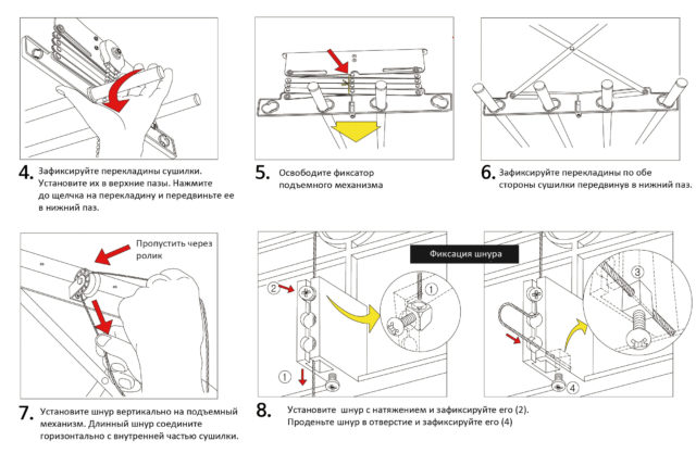 Монтаж потолочной сушилки для белья своими руками не слишком сложен. Нужно только внимательно следовать всем шагам в инструкции по установке.