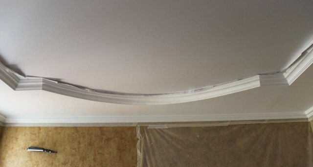Багеты из пластика, пенопласта и дерева для подобных целей не подходят – они недостаточно пластичны. Попытка все же изогнуть такую деталь закачивается вполне очевидным исходом – она попросту ломается из-за чрезмерного напряжения. Существует ряд ситуаций, где без плинтусов, поддающихся изгибу, попросту не обойтись. Например, при наличии колонн, эркеров и прочих сложных форм в дизайне обязательно будут присутствовать изогнутые линии – и гибкий потолочный плинтус в такой ситуации придется как нельзя кстати.