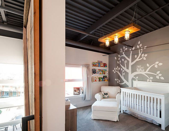 Использование стиля Лофт при оформлении детской комнаты является достаточно смелым решением. Однако, при должном подходе, отделанное таким образом помещение окажется весьма симпатичным. Комнату для девочки можно превратить в опочивальню для принцессы в королевском замке. В этом плане поможет правильно подобранная занавеска и использование светлого натяжного полотна. Его глянцевая фактура позволит минимизировать определенную грубость остального интерьера. Нужное впечатление увеличит грамотный подбор аксессуаров.
