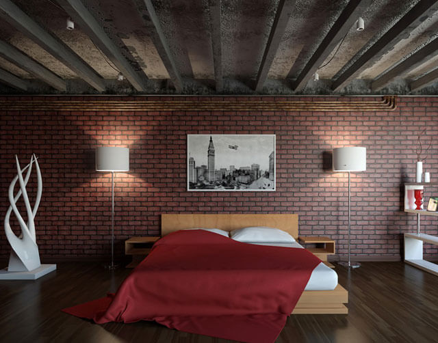 Спальня с потолком Лофт