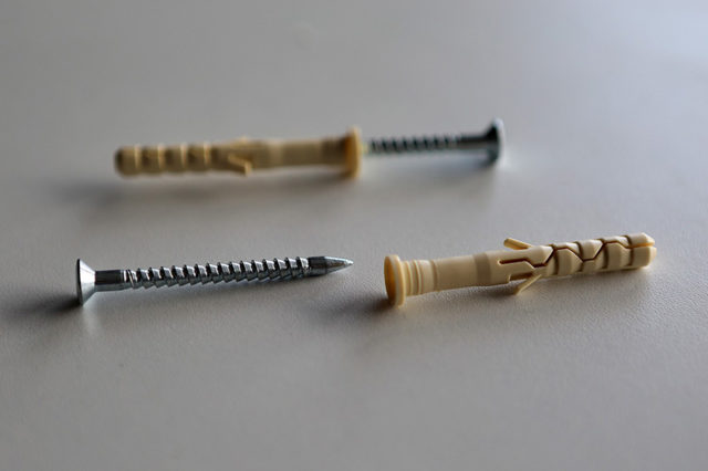 Саморезы для крепления багетов – пластиковые дюбеля с шурупами. При выборе длины и сечения учитывается материал, на который монтируется профиль. Для древесины, кирпича, бетона и гипсокартона расстояние между саморезами не превышает 8 см, для керамической плитки или металла – до 12 см.