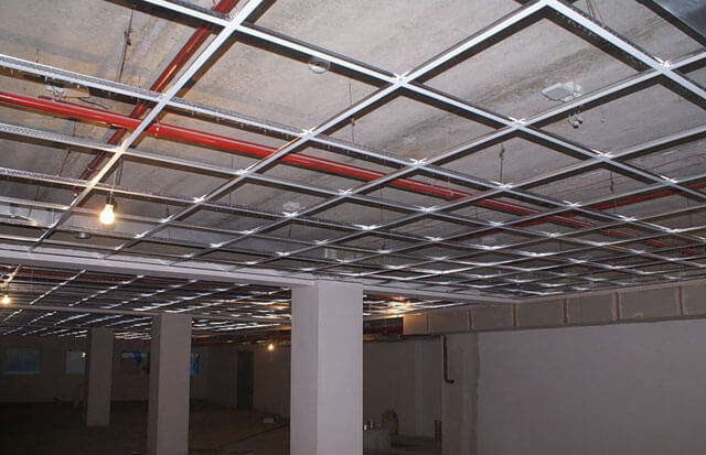 Первым этапом монтажных работ по обустройству потолков Армстронг является сооружение каркаса.