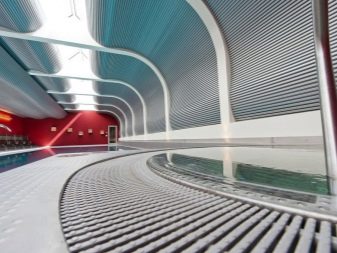 Изогнутые дизайнерские конструкции из алюминиевых реечных потолков украсят любое помещение. Это может быть бассейн в загородном коттедже или гостиная в городской квартире.